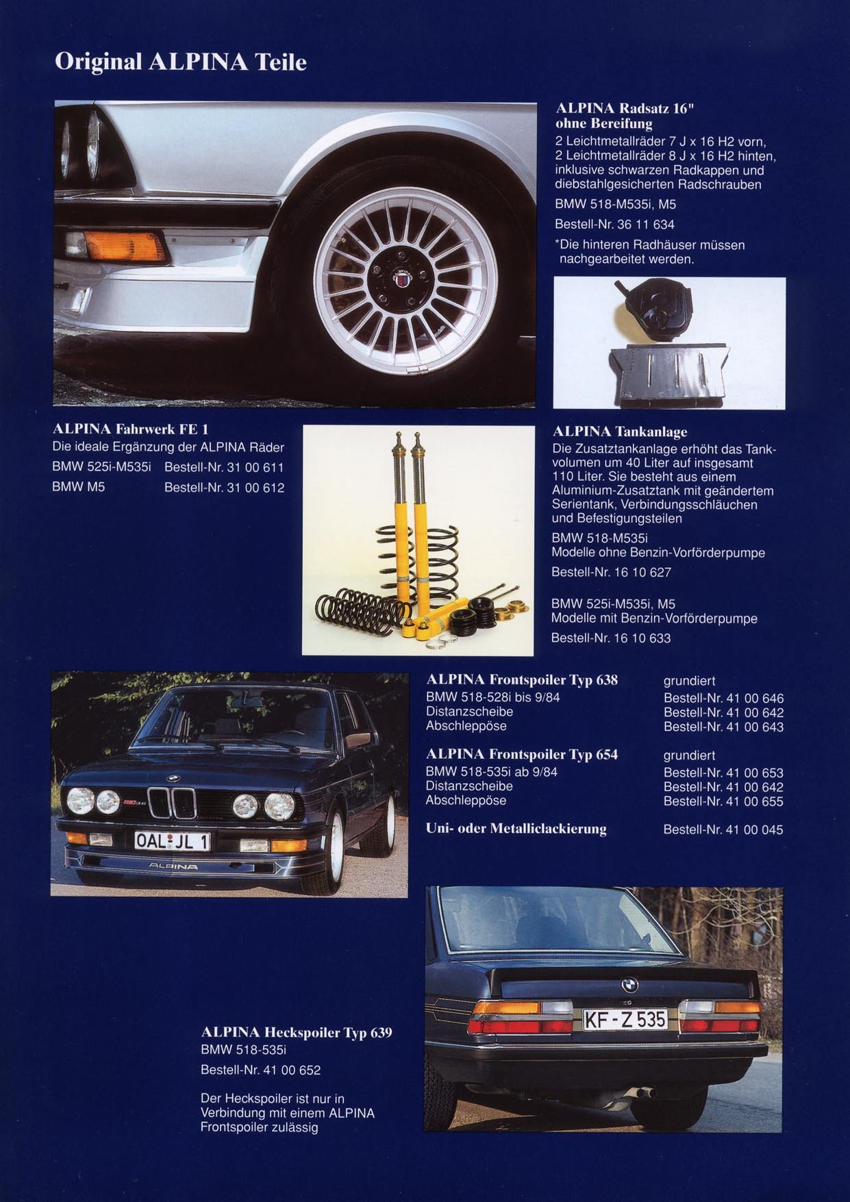 Para el E28, ALPINA ofrece: Frontspoiler, Heckspoiler.