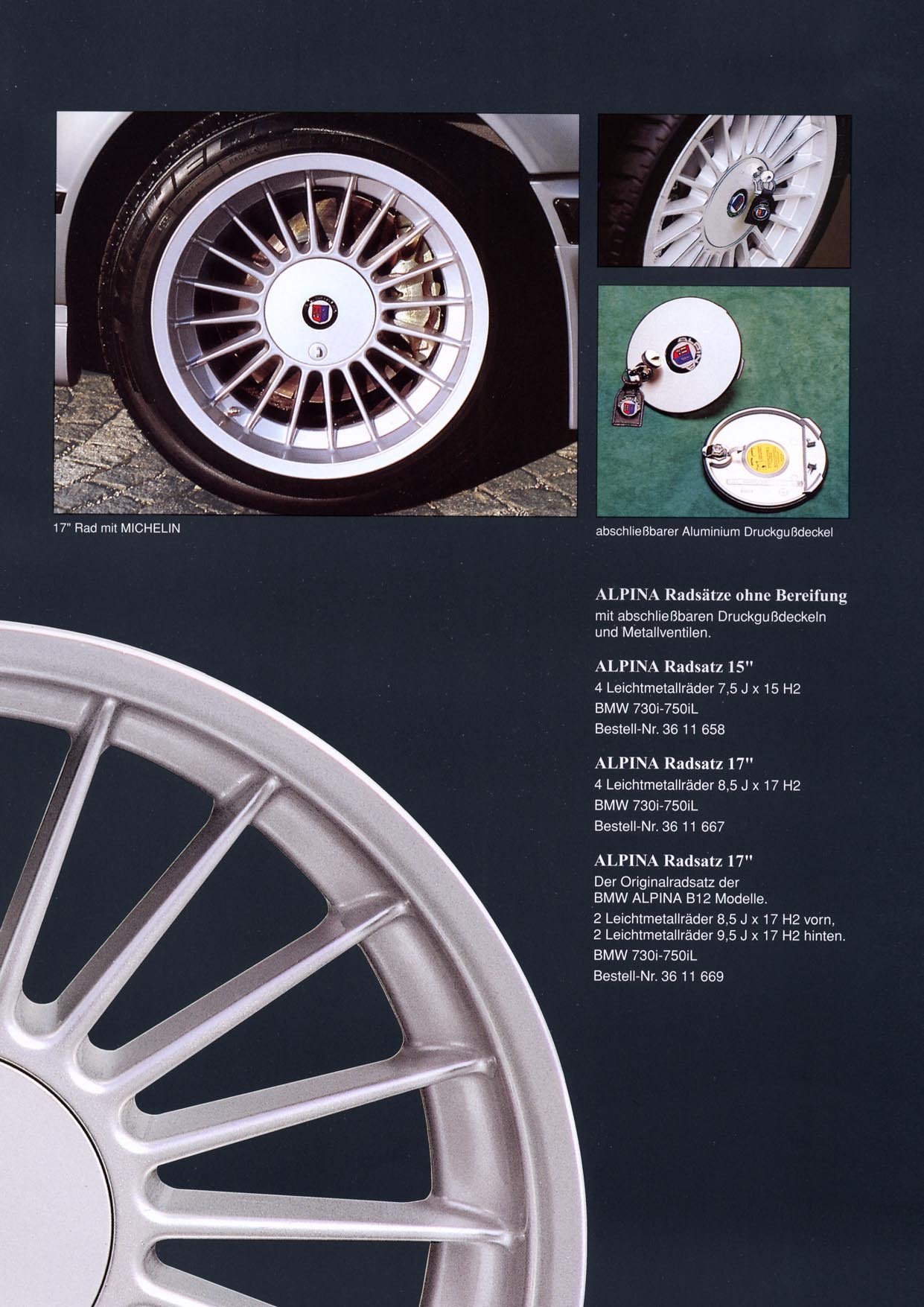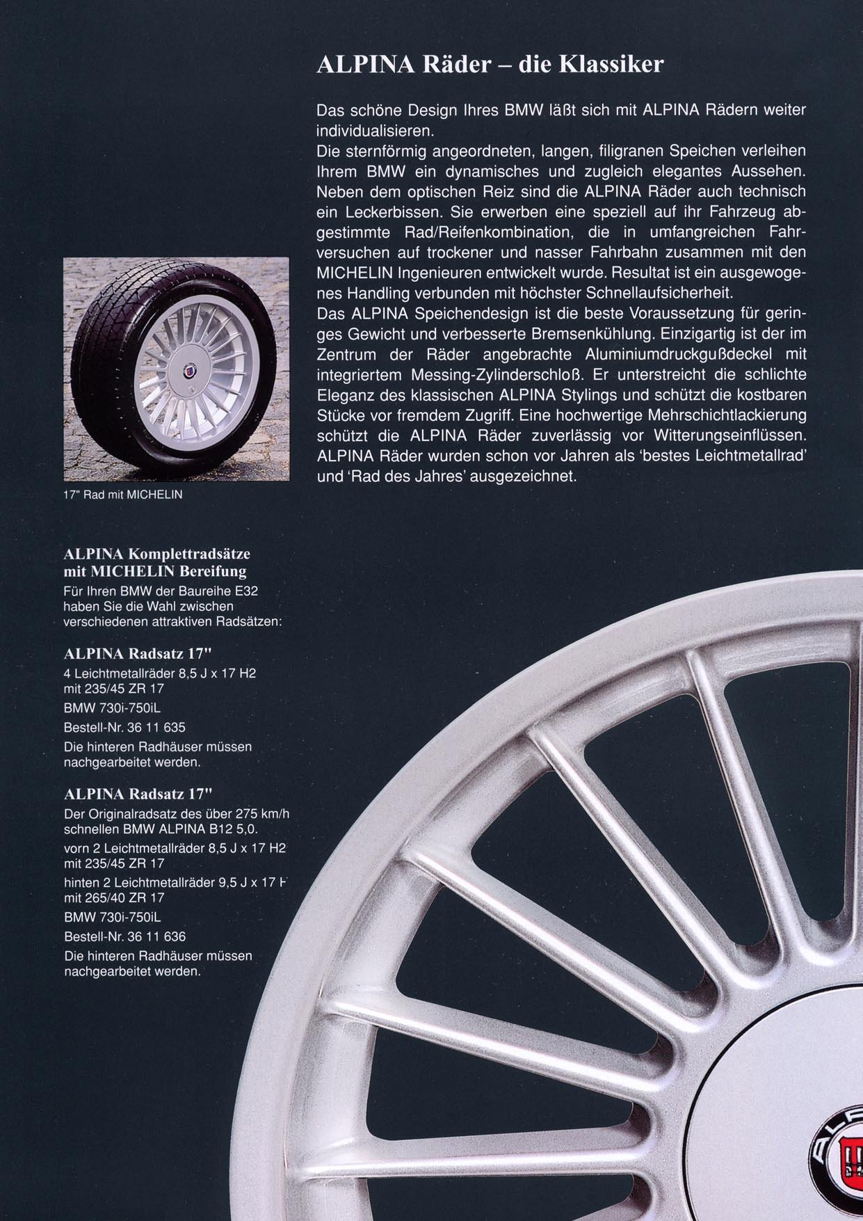 Descarga el catálogo PDF original de ALPINA con todas las especificaciones técnicas, medidas, offsets y códigos de referencia para el BMW E32.