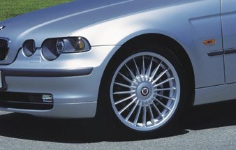 Accesorios ALPINA para el BMW E46 Serie 3 (1998-2006): llantas Classic y Styling II en 17" y 18", suspensión FE3 SACHS/Eibach, paquetes aerodinámicos específicos para cada carrocería y amplio equipamiento interior en madera noble. Catálogo para Limousine, Touring, Coupé, Cabrio y Compact.