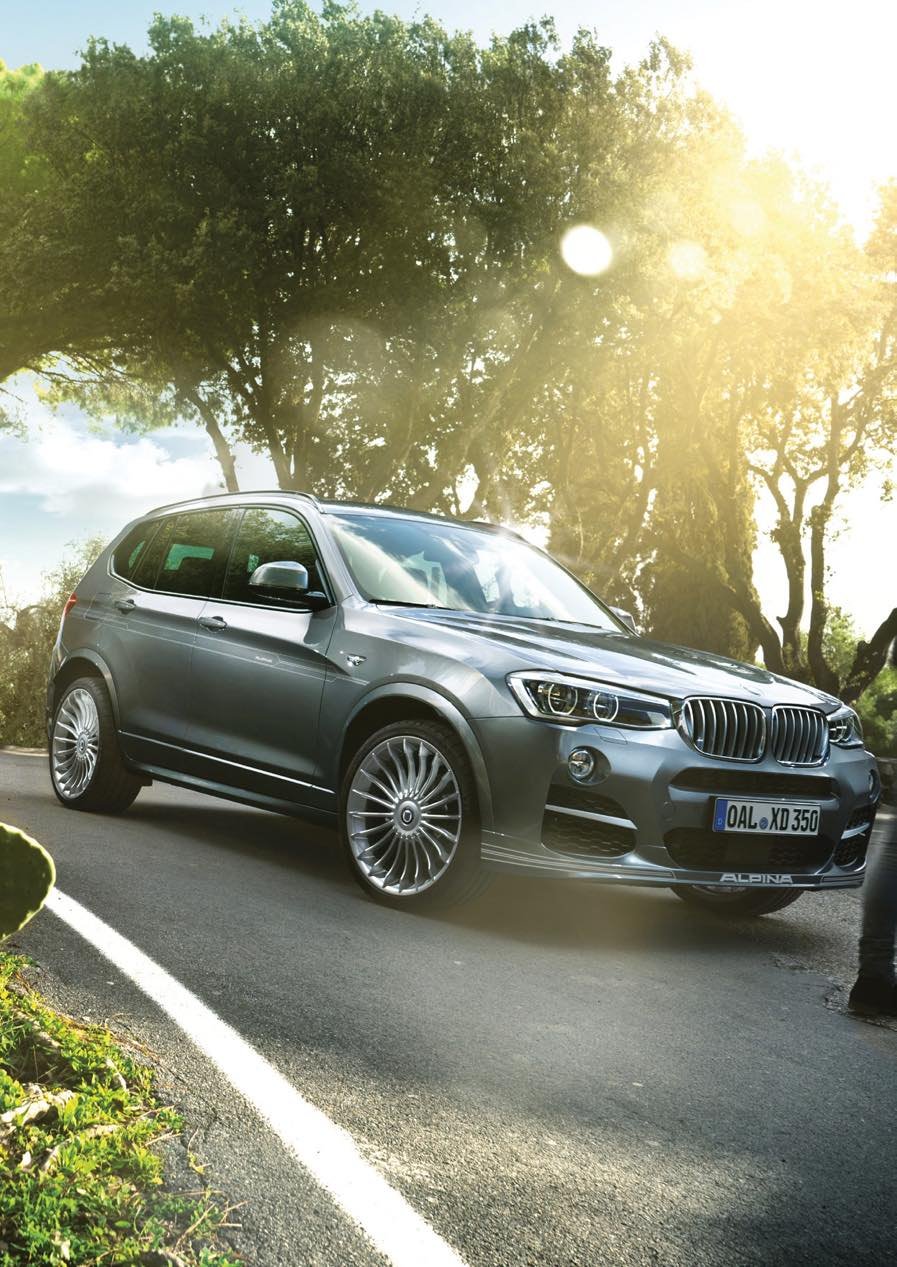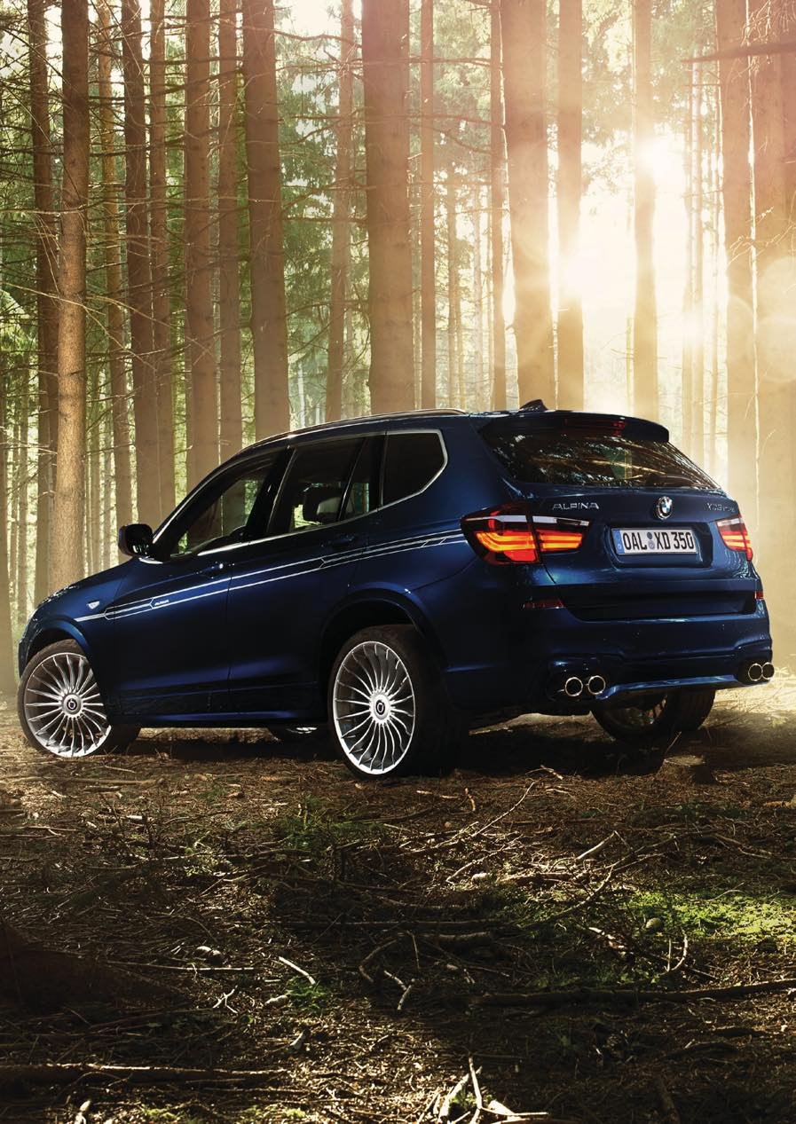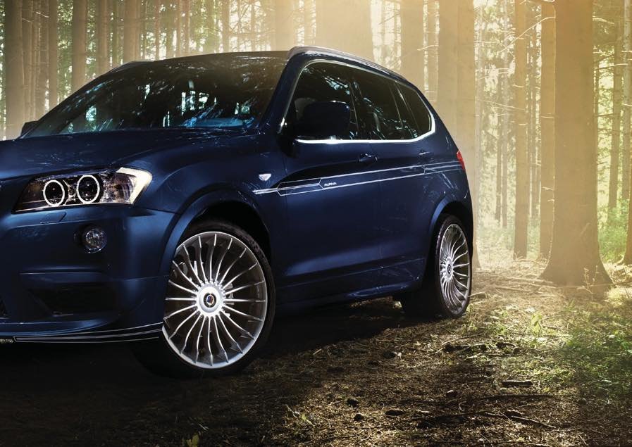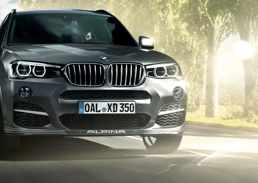 Accesorios ALPINA para el BMW F25 X3 (2010-2017): llantas Classic 20" y spoiler delantero deportivo. Componentes del catálogo ALPINA para el SUV compacto X3.